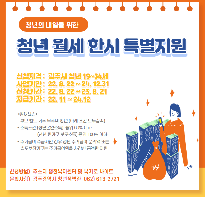 광주시 청년월세 한시 특별 지원/ 조건/방법/지원금/주의사항