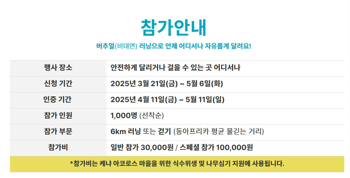 ✔ 기부 목적을 이해하고 참가하기: 단순한 러닝이 아닌 기부 행사임을 인지하고 참여