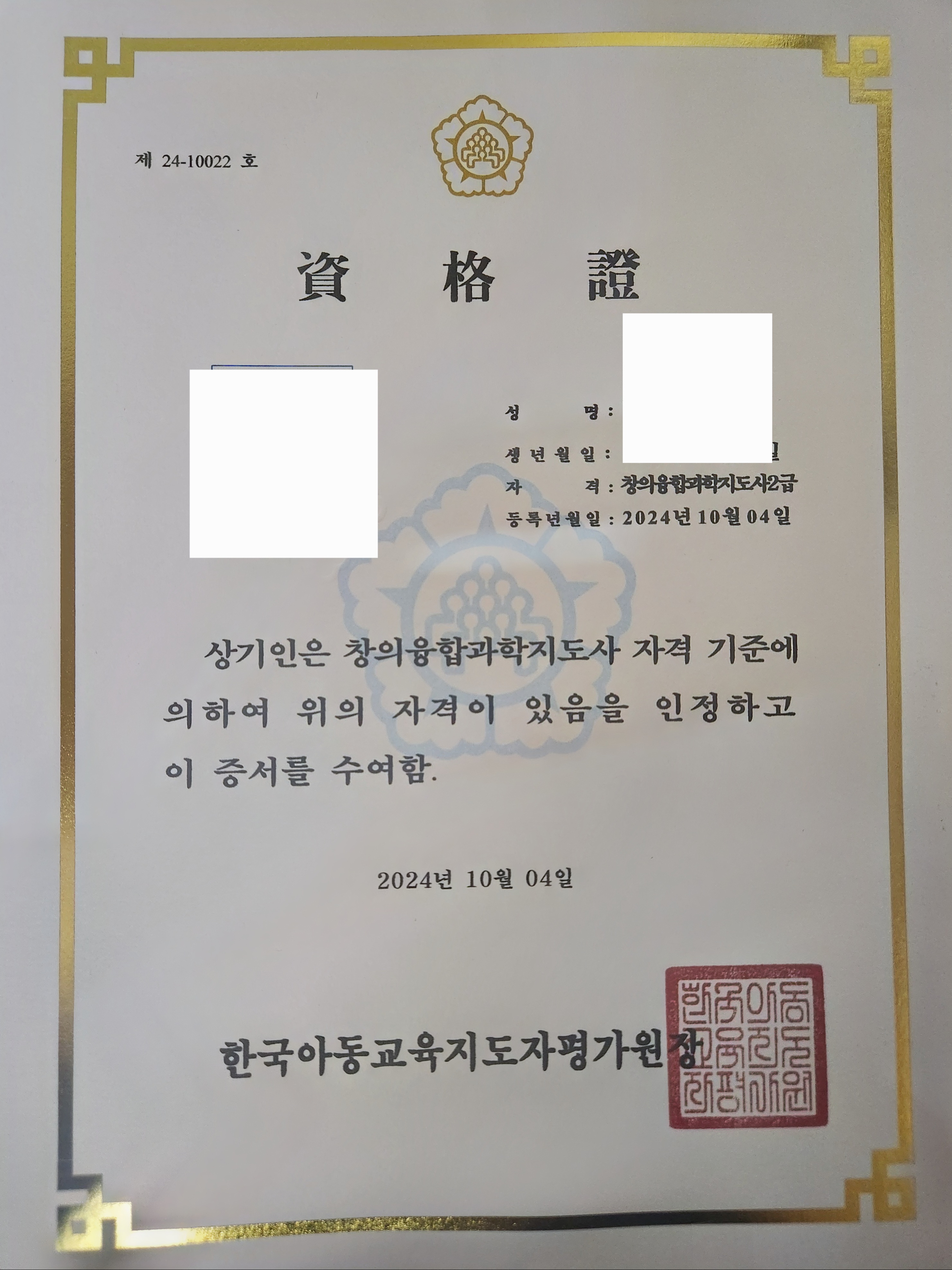 모든 과정이 끝나면 수료증과 자격증이 주어진다.
