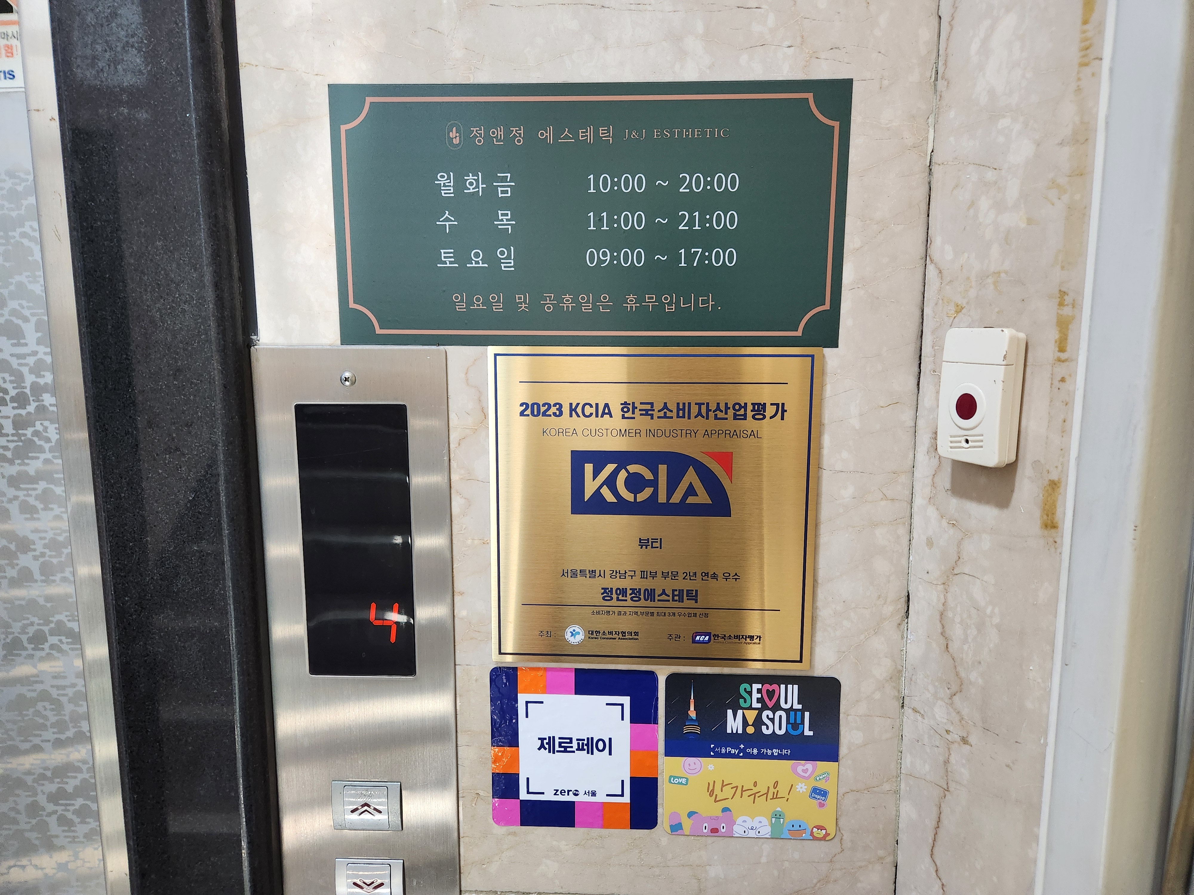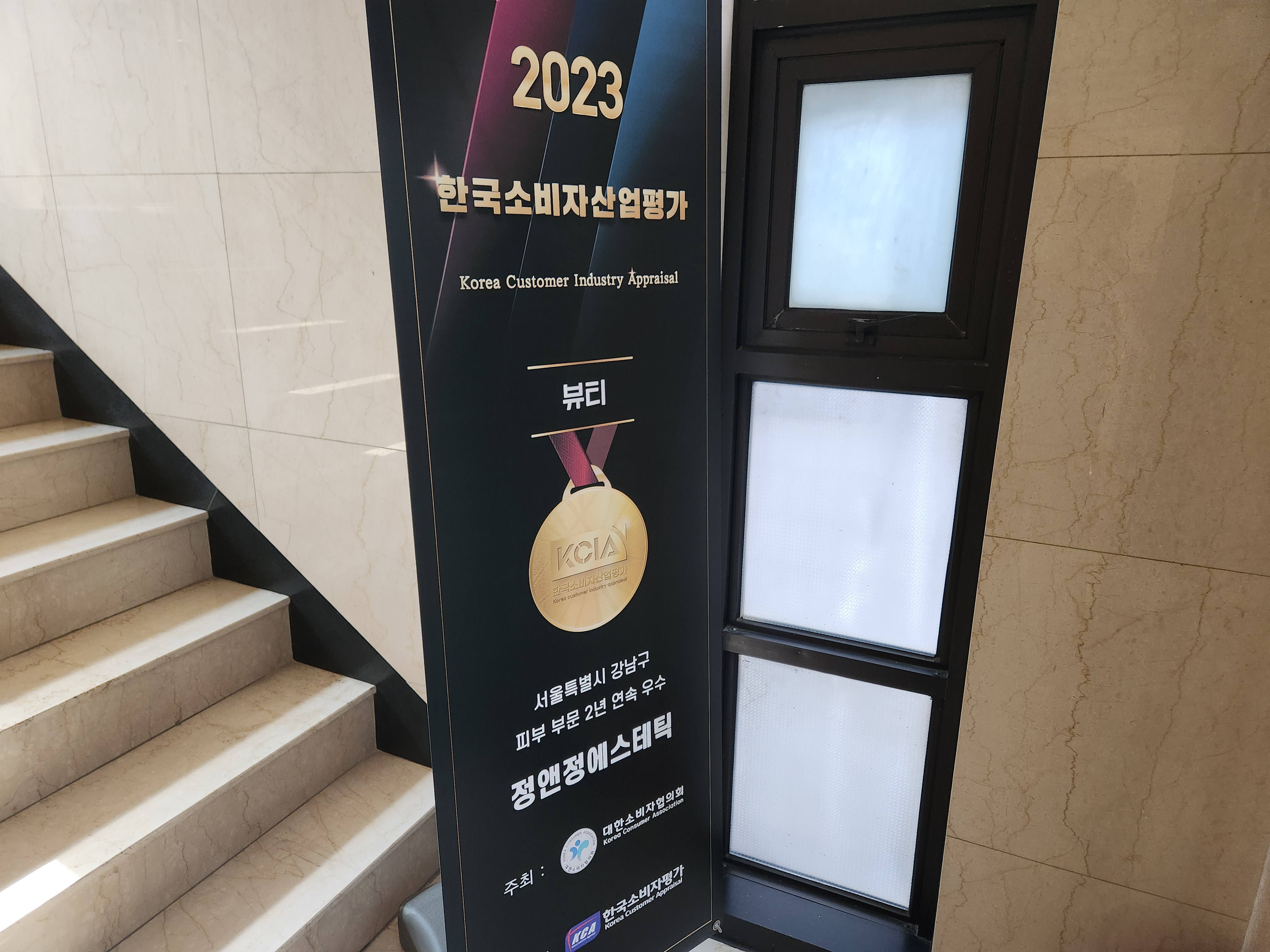 23년 소비자 평가 피부 부분 2년 연속 우수상을 받았다는 푯말이 엘리베이터에서 내리면 바로 보인다. 그렇지만 나는 사실 피부보단 경락 마사지에 관심이 있는 터라 이건 패스했다.