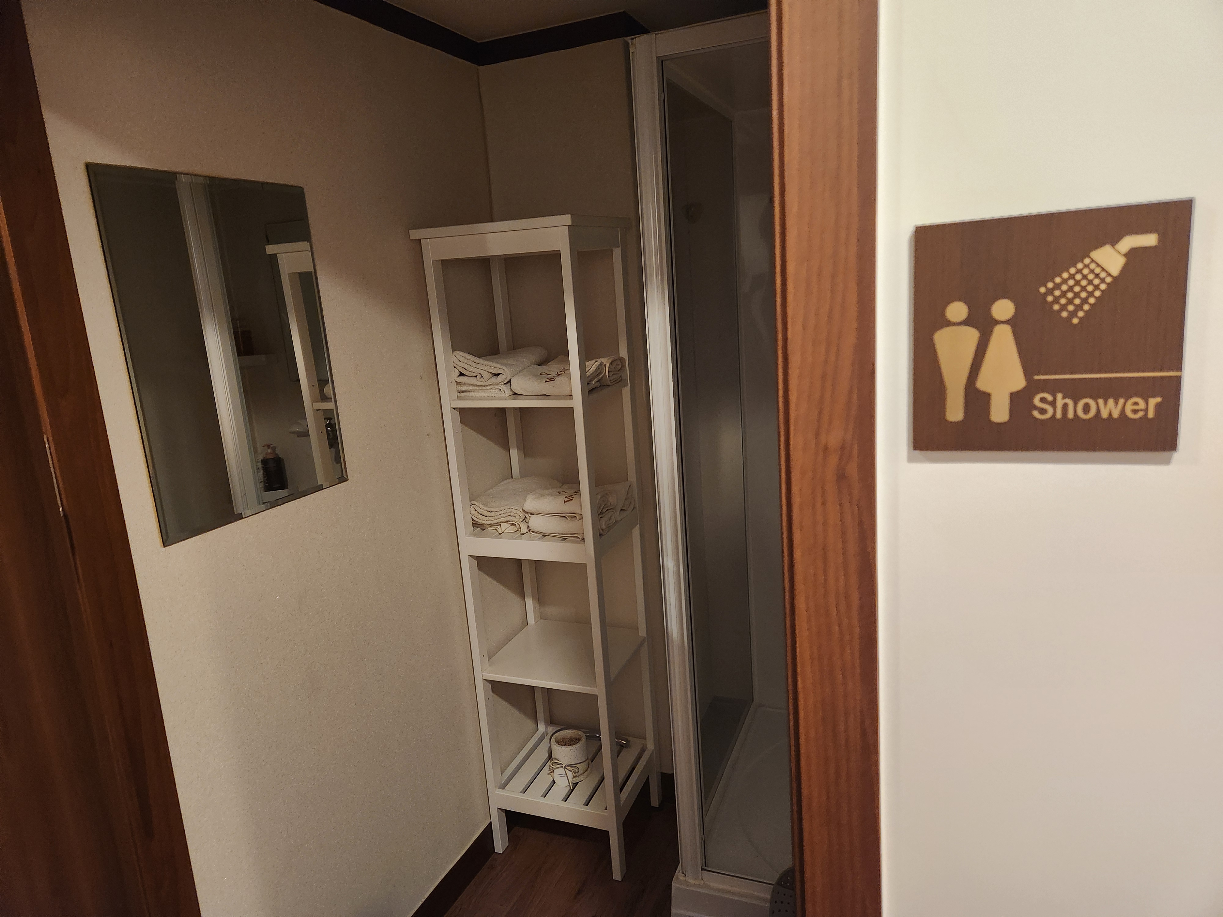 파우더룸, 구분 된 남녀 화장실( 건물 화장실이 아닌 관리실 안에 화장실이 따로 있었다) , 샤워실까지 딱 필요한 공간들이 아주 깔끔하게 구분되어 있었다. 회원실로 정확히는 기억나지 않으나 2개의 침대로 이루어진 룸들이 총 4개? 5개 정도 구비돼 있었다.
