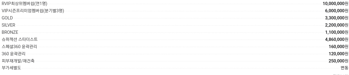 회원권은 골드,실버,브론즈로 나뉘어져 있으며 구매 후 그때 그때 내가 필요한 관리를 진행하는 방식으로 돼 있었다.