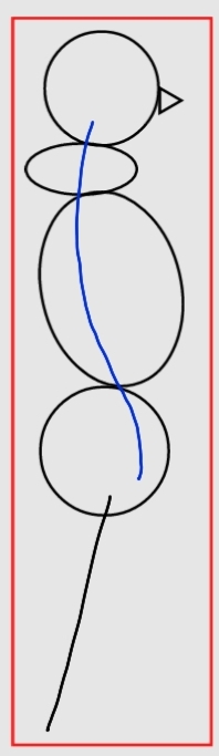 골반을 앞으로 미는 과정에서 고관절이 신전되며 무게 추를 뒤로 보내 중심을 맞춘 상태(하복부 단축)서 다시 뒤로 빠지는 무게 중심을 위쪽 등을 구부려(상복부 수축) 체중심을 맞춘 체형
