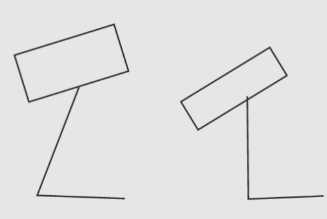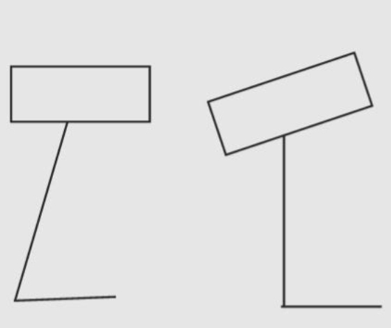위의 케이스와 동일하게 만약 앞으로 쏠려있는 다리를 바로 세우게 되면 이 각도가 훨씬 더 심한 후방경사의 케이스가 되는 것.