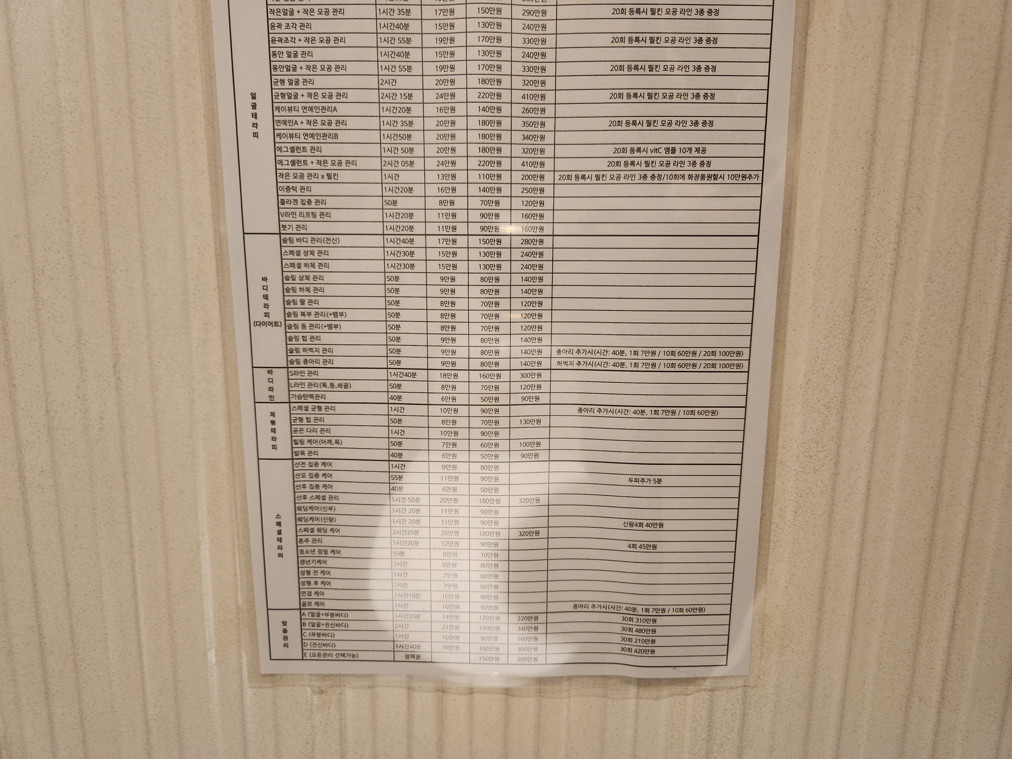 -관리마다 이름이 붙으며 굉장히 세부적으로 나뉘어져 있으나 이렇게까지 나눌 필요가 있었을까? 하는 생각과 굳이 없어도 될 거 같은 마사지의 느낌들도 있었다. 예를 들면 팔관리이다.