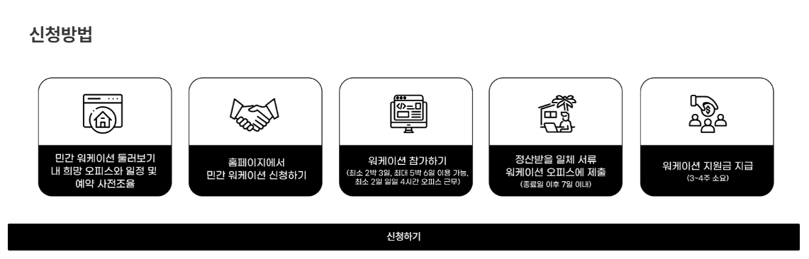 참고: 신청은 워케이션 시작일로부터 3일 전까지 가능하며, 예산 소진 시 조기 마감될 수 있습니다.