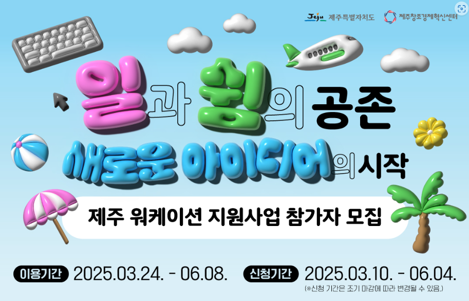 제주도는 워케이션 활성화를 위해 다양한 지원 사업을 운영하고 있습니다. 특히, 도외 기업, 재직자, 개인사업자, 프리랜서 등을 대상으로 한 지원 프로그램을 통해 제주에서의 워케이션을 촉진하고 있습니다.