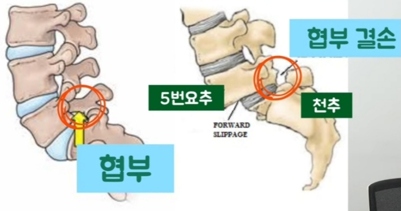 하나의 척추가 인접하는 밑의 척추에 비해 정상적인 정렬을 이루지 못하고 앞으로 빠져있는 상태.