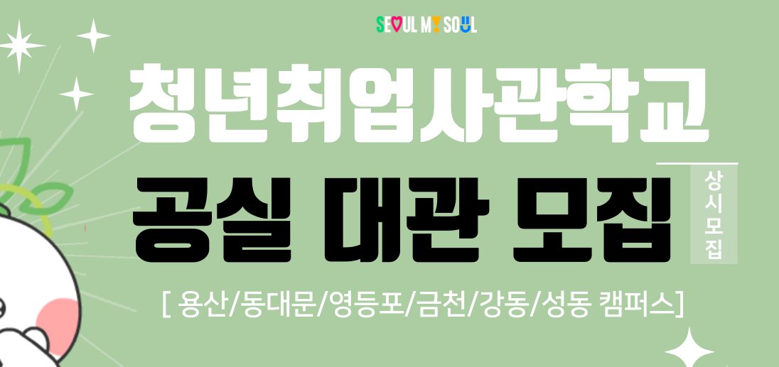 서울시가 AI 산업 중심으로 급변하는 취업 시장에 발맞춰‘청년취업사관학교’의 교육과정을 전면 개편하고AI 중심 융합 실무교육생을 전격 모집합니다.만 19세~34세 청년이라면 누구나!비전공자도, 취준생도, 전직을 희망하는 사회초년생도