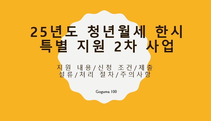 국토부 진행 25년도 청년월세한시특별지원2차 사업/신청 조건/절차/주의사항