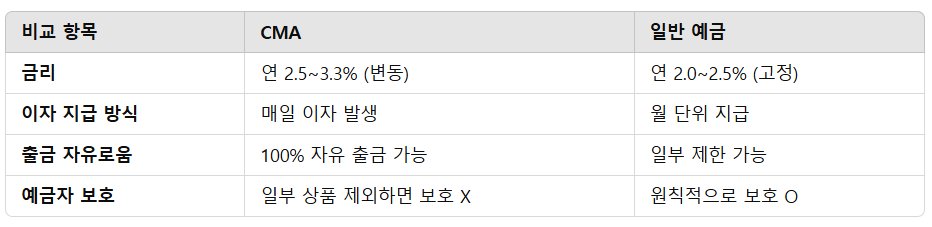 ✔ 단기 운용 & 높은 금리 원하면 CMA 선택
