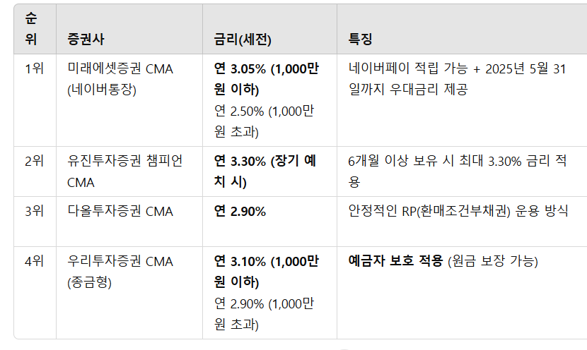 2025년 3월 현재, 가장 높은 금리 & 혜택을 제공하는 CMA 계좌를 비교 분석했습니다.