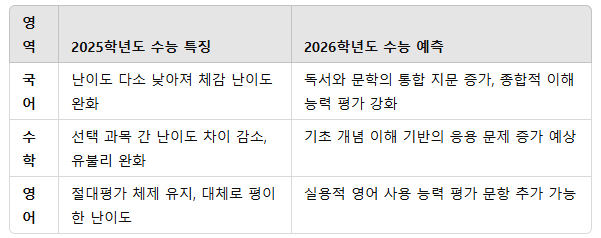 25학년도 수능 분석 및 2026학년도 수능 예측